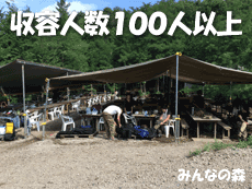セーフティーエリアの収容人数は100人以上。みんなの森のセーフティーエリアは人数分のイスとテーブルをご用意してます。